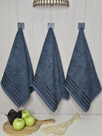 Набор махровых полотенец 3 шт (40*70) синий, полоса
