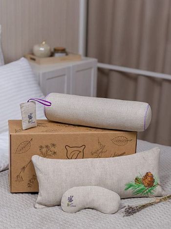 Набор подушек для йоги "валик + накладка на глаза" коричневый