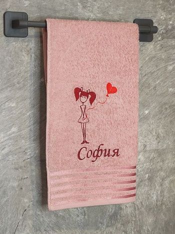 Полотенце с вышивкой 70*140 "Красотка Татьяна" бордо
