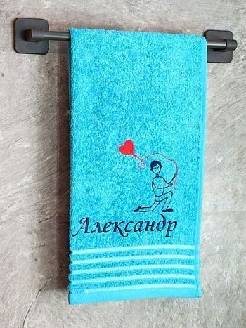 Полотенце с вышивкой 70*140 "Любимый сын" лазурный
