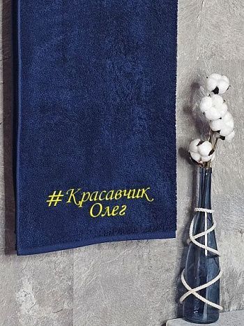 Полотенце с вышивкой 70*140 "Любимому дедушке" темно-синее