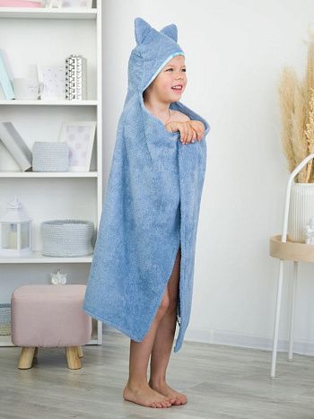 Накидка детская с капюшоном "КОТИКИ" 110*70 см, голубой