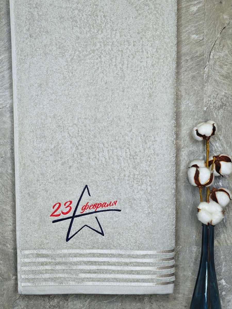 Полотенце с вышивкой 70*140 "23 февраля" светло-серое