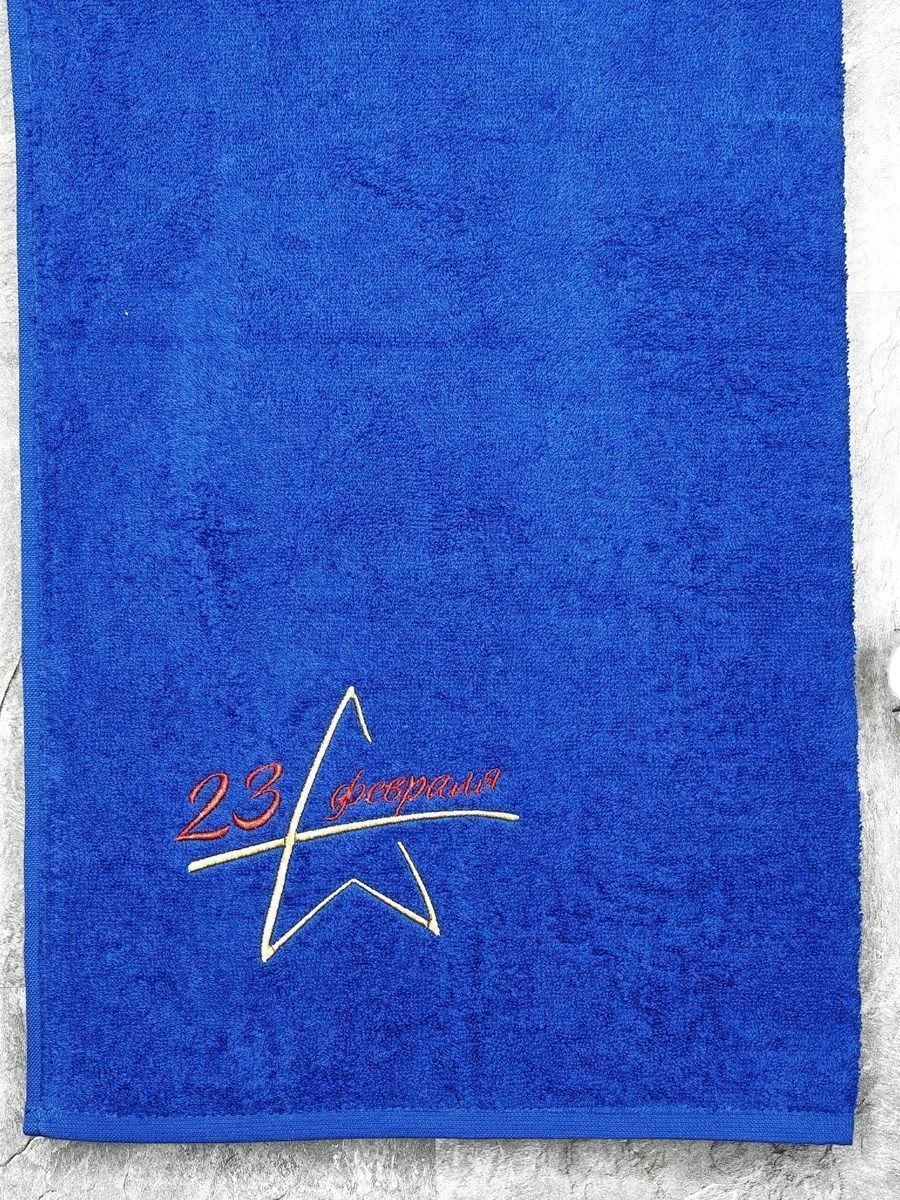 Полотенце с вышивкой 70*140 "23 февраля" васильковый