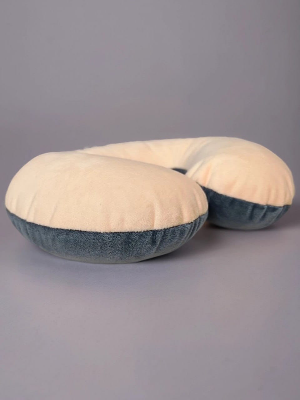 Детская подушка-рогалик для путешествий в автомобиле, самолете и поезде для малышей от 6 месяцев до 7 лет. Цвет двусторонний: персиковый и темно-серый.