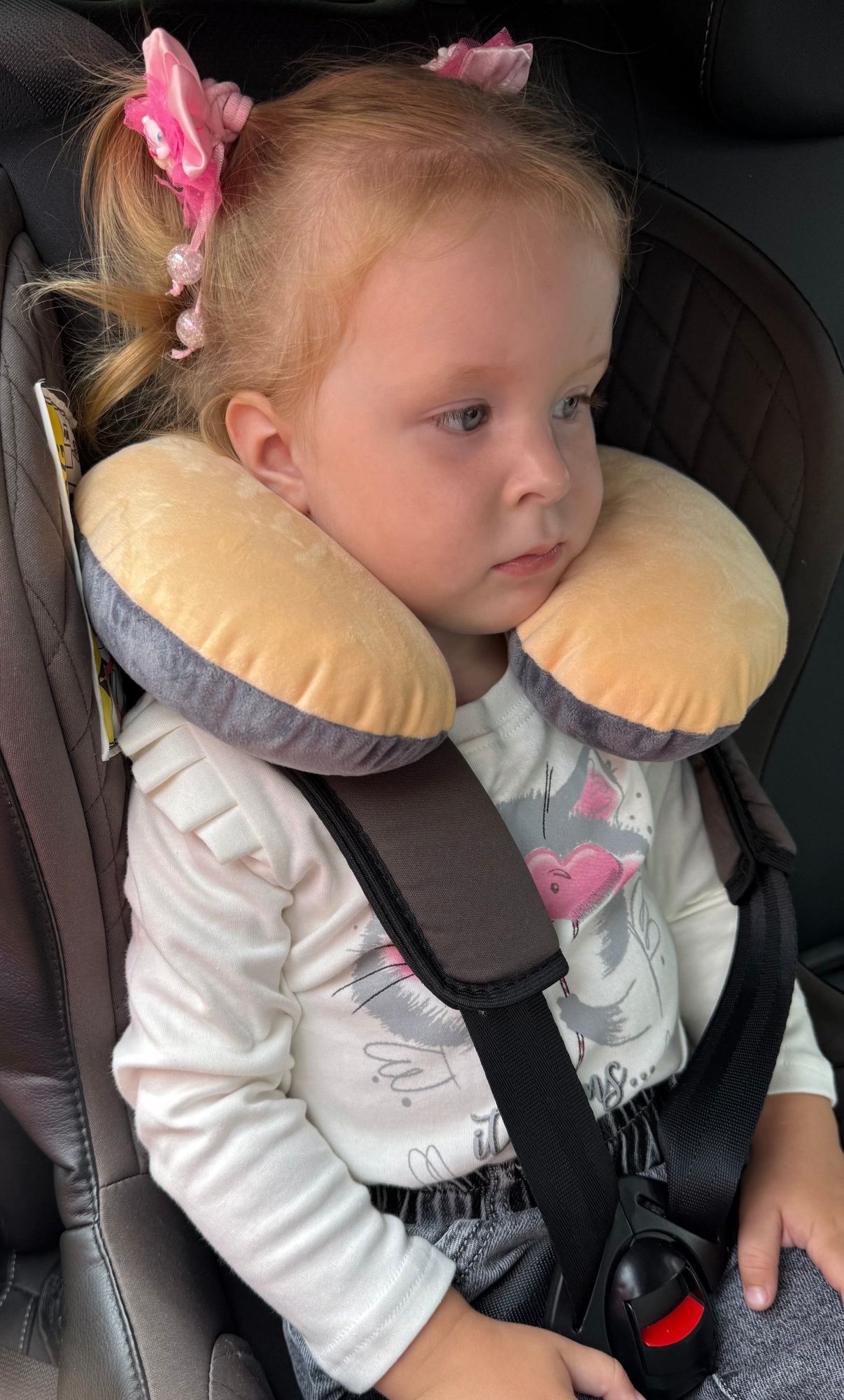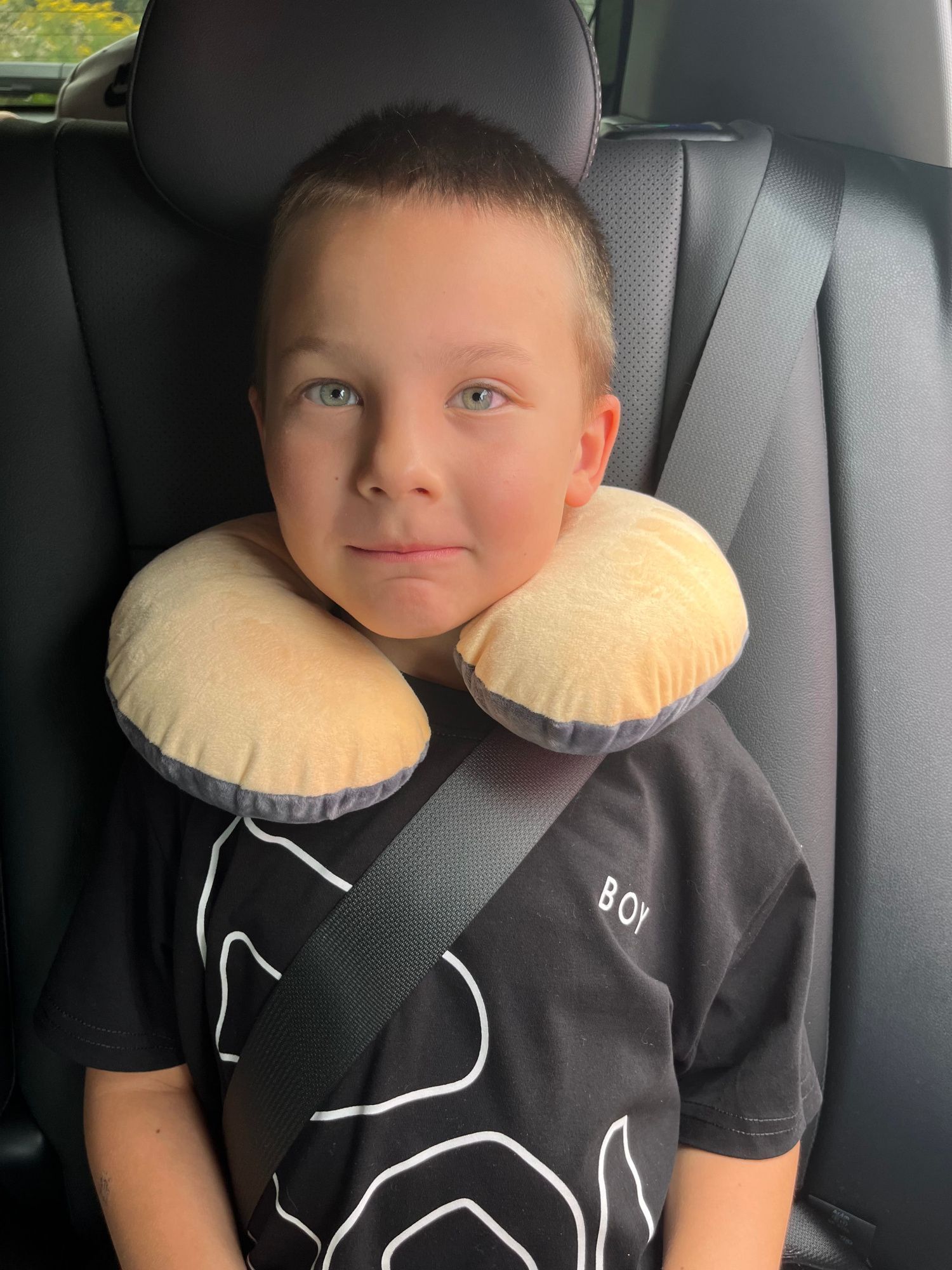 Эта подушка обеспечит вашему ребёнку комфортный сон во время поездки. Её форма в виде рогалика поддерживает голову и шею, предотвращая их затекание во время сна в автомобиле.