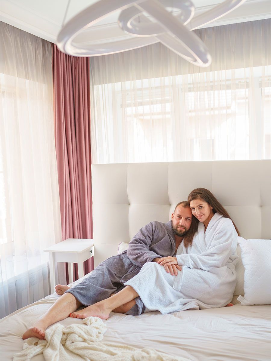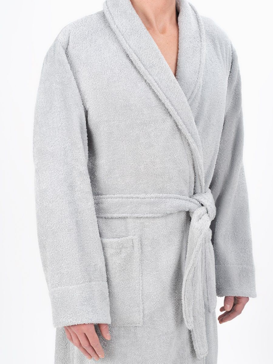 Модель халата с поясом позволяет ему быть универсальным и подходит к любому типу телосложения, скрывая недостатки и подчеркивая достоинства фигуры. Наличие карманов делает его практичным для ношения дома, в бане или сауне, а также на отдыхе.