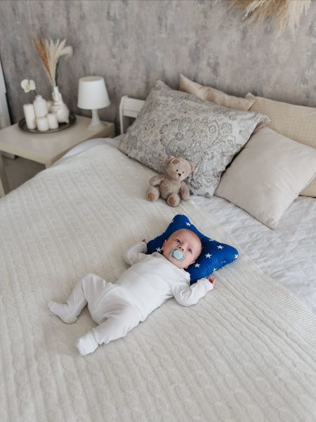 МАЛЮТКА – это удобная и полезная подушечка для самых маленьких детишек. Необычная форма в виде бабочки помогает держать головку на подушечке во время сна или бодрствования и поддерживает шею, обеспечивая правильное развитие.
