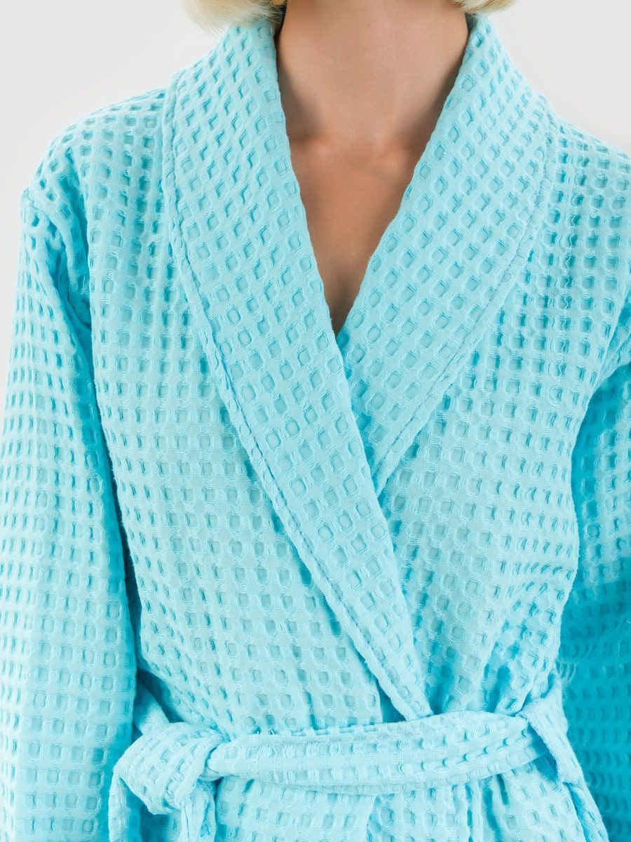 Крупная клетка халата даёт возможность коже лучше дышать, так как охватывает больше воздуха, а волокна ткани максимально гигроскопичны.