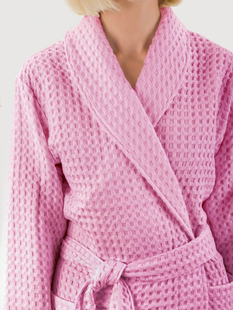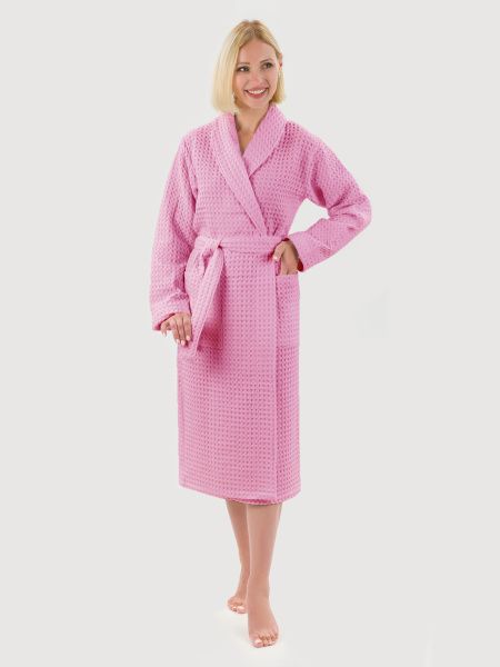 Вафельный халат «Комфорт» в крупную клетку с карманами и пояском. Благодаря высочайшему качеству ткани, халат не растягивается, очень прочен и обеспечивает максимум комфорта.