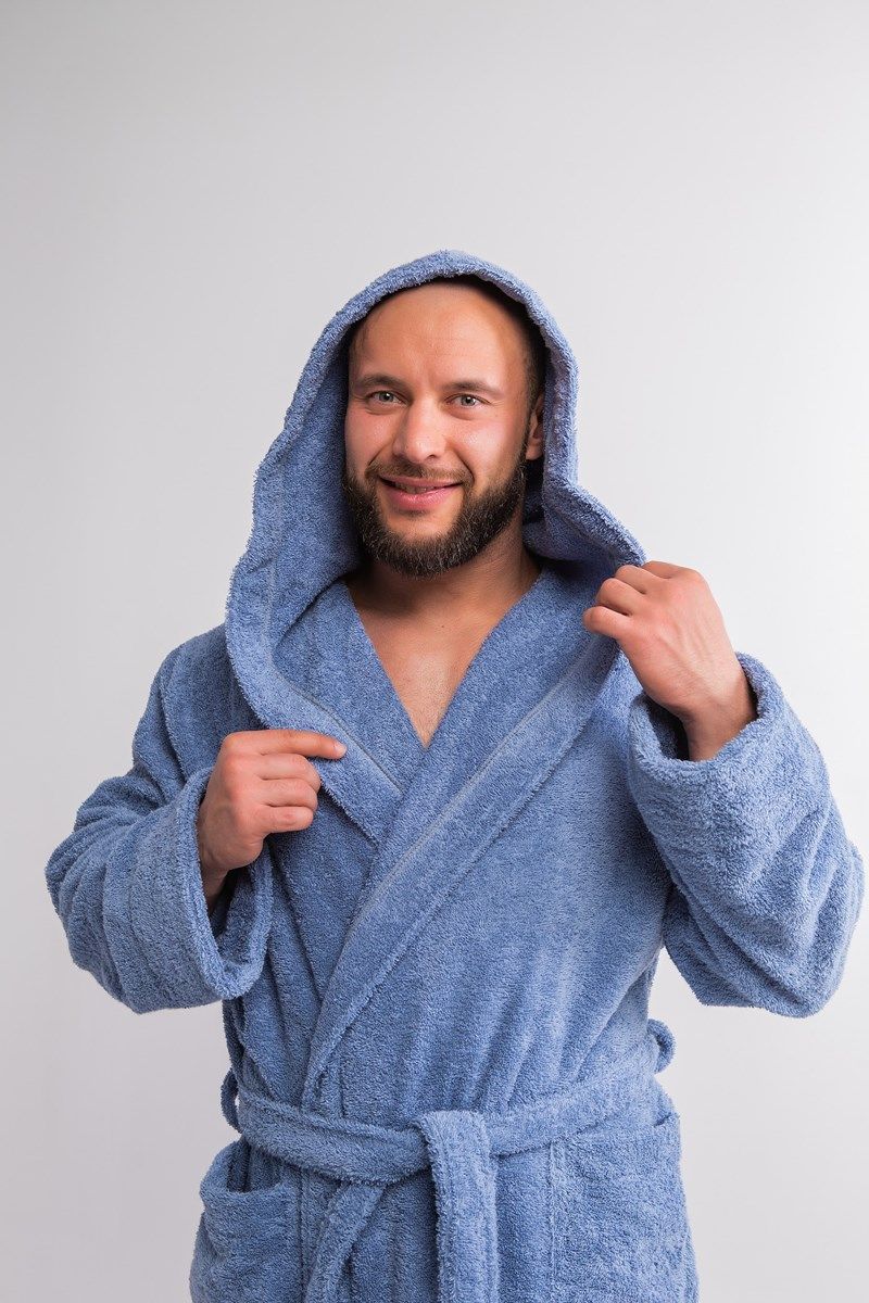 Махровая ткань из 100% хлопка идеально согревает и быстро высушивает кожу после водных процедур. Капюшон убережет шею и голову от сквозняков и резкой смене внешней температуры, особенно актуально при посещении бани в холодное время года.