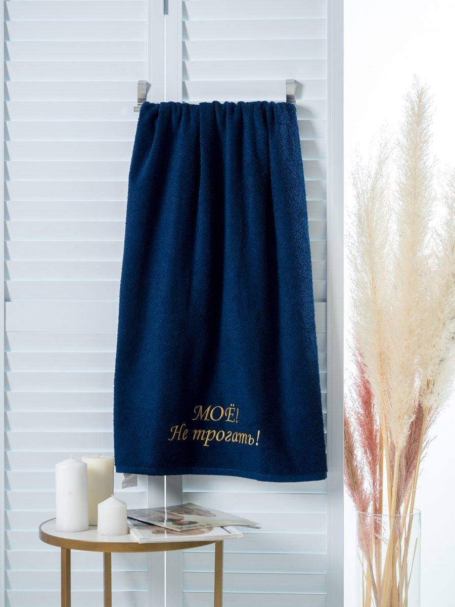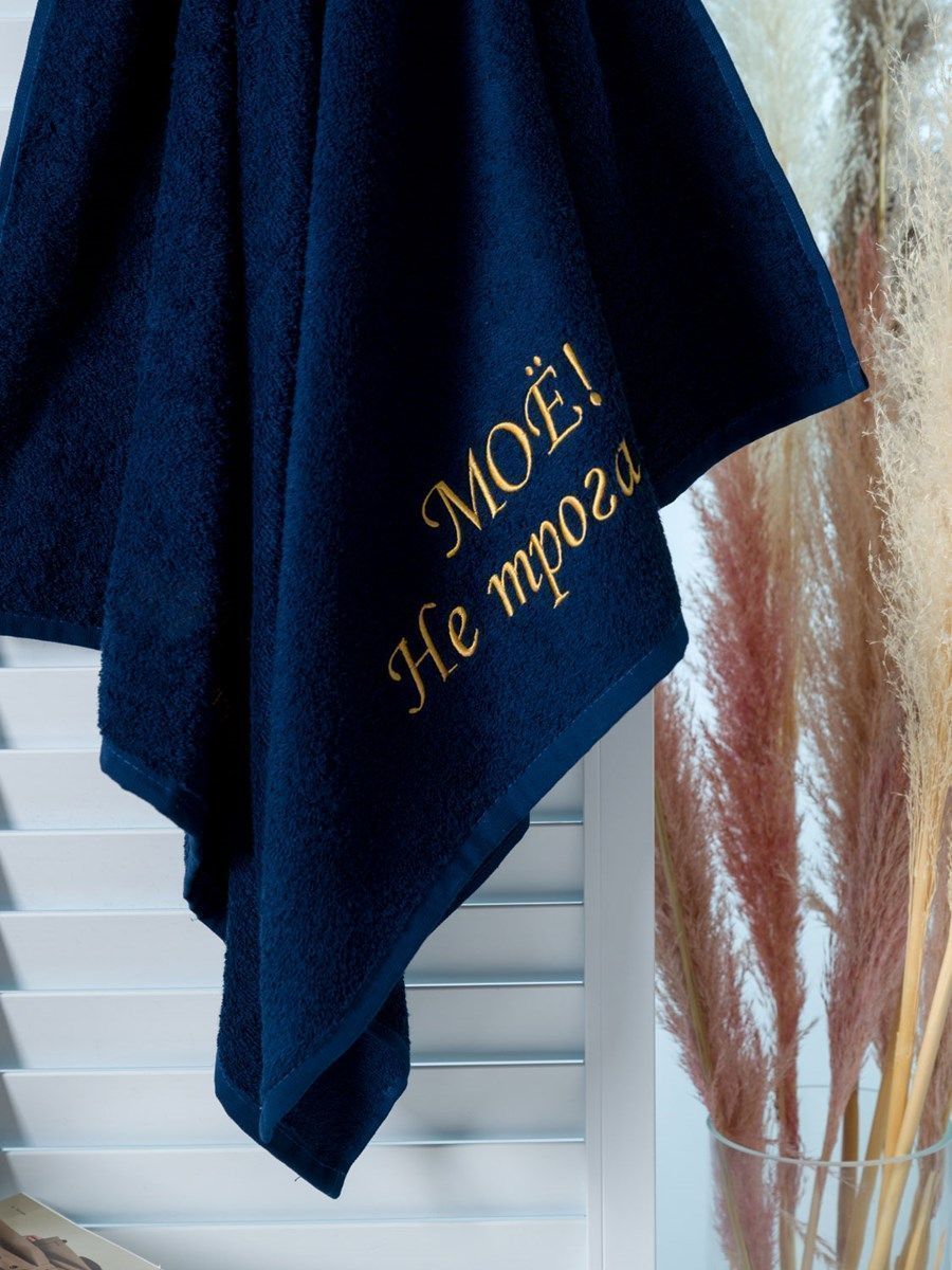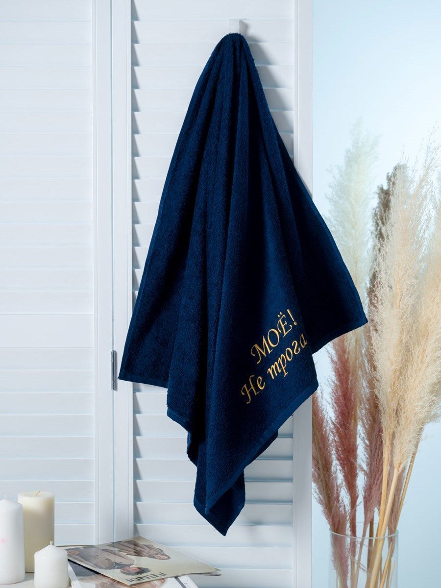 Полотенце с вышивкой 70*140 "Мое" темно-синее