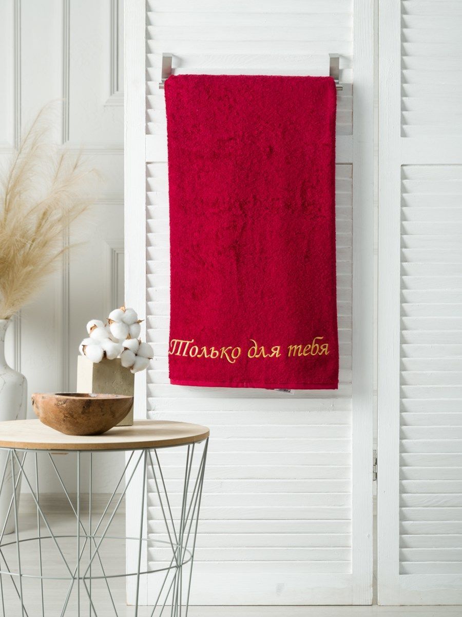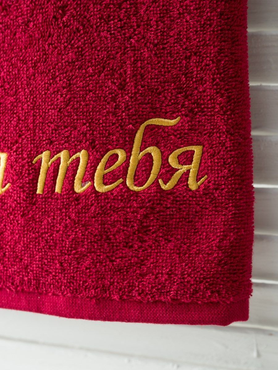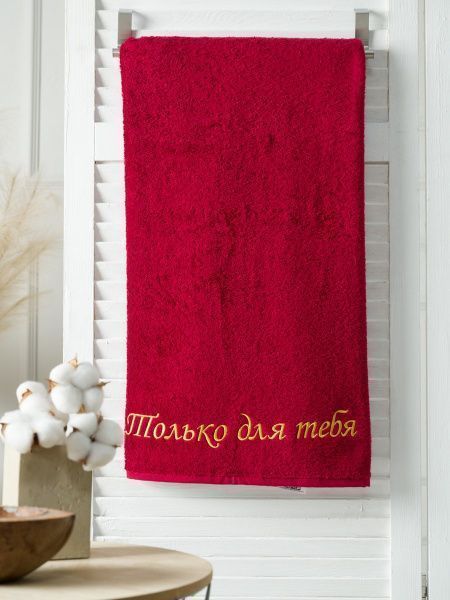 Полотенце с вышивкой 70*140 "для тебя" бордовое