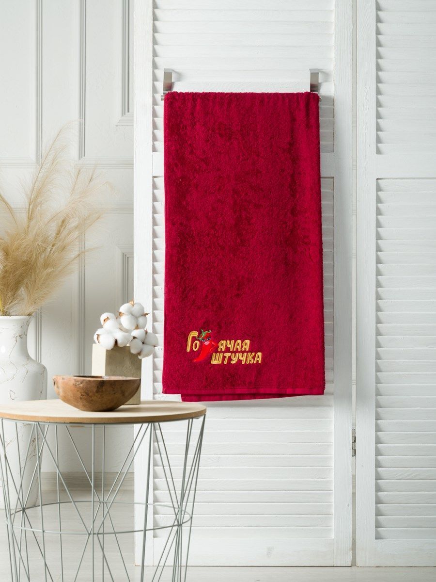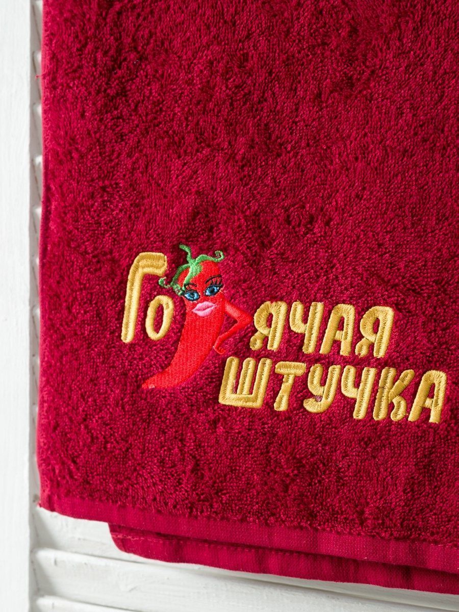 Полотенце с вышивкой 70*140 "штучка" бордовое