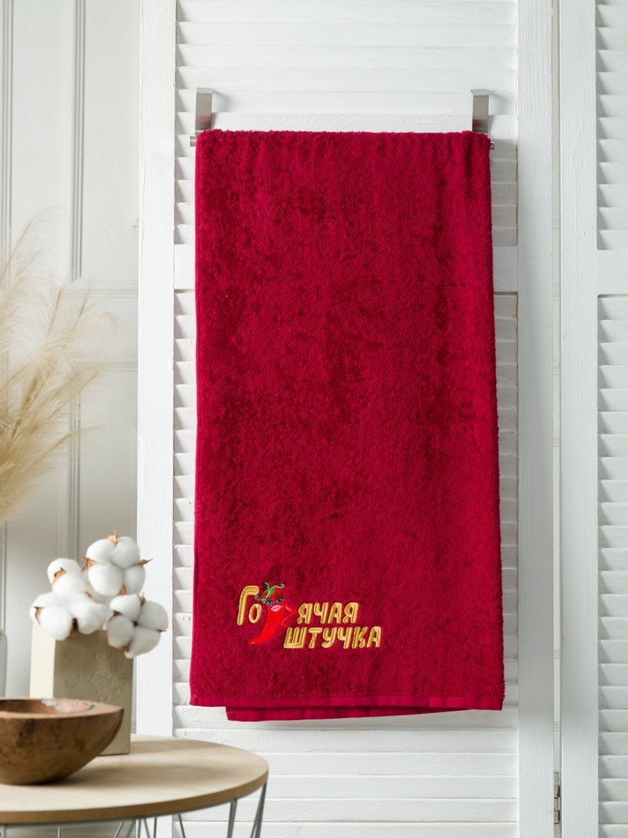 Полотенце с вышивкой 70*140 "штучка" бордовое POL/штучка