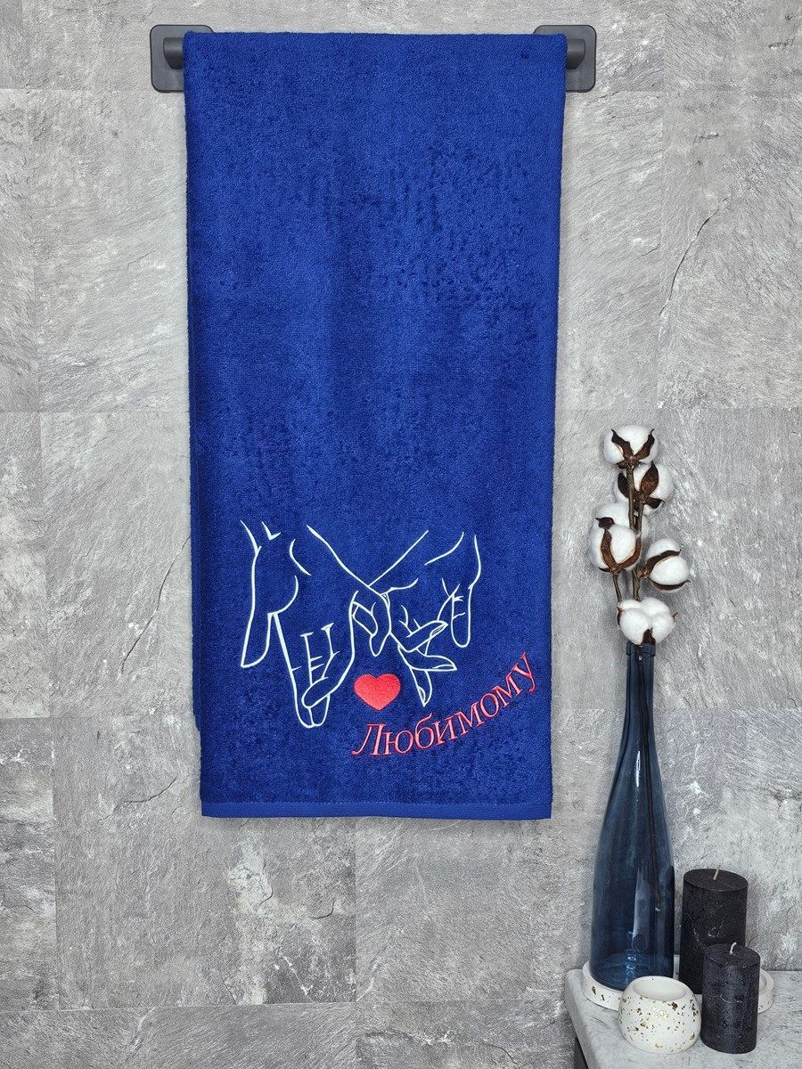 Полотенце с вышивкой 70*140 "любимому" синее