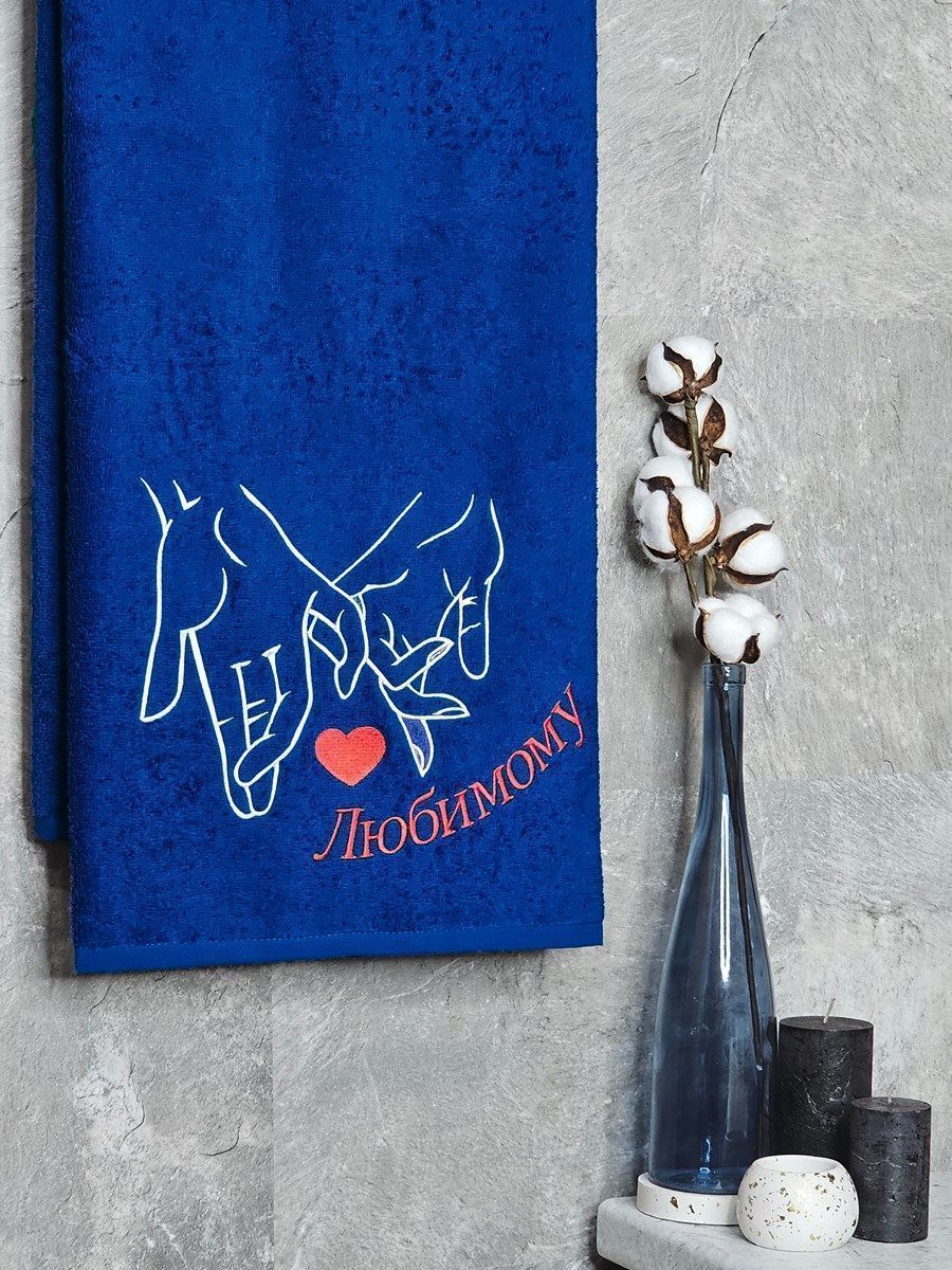 Полотенце с вышивкой 70*140 "любимому" синее POL/любимому2