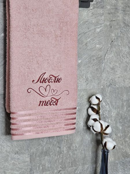 Полотенце с вышивкой 50*90 "люблю тебя" розовое