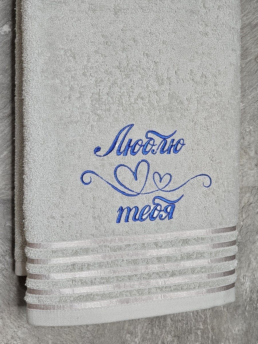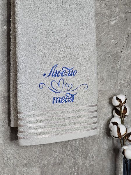 Полотенце с вышивкой 50*90 "люблю тебя" светло-серое
